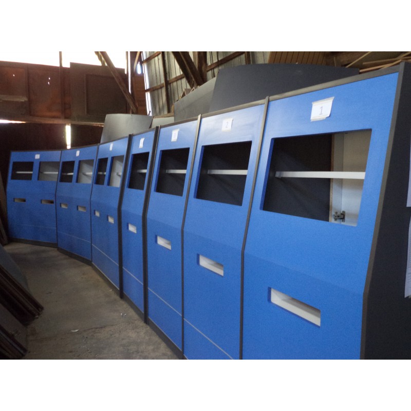 7 Muebles para instalar PC auto atención de público, 5 individuales y 3 dobles