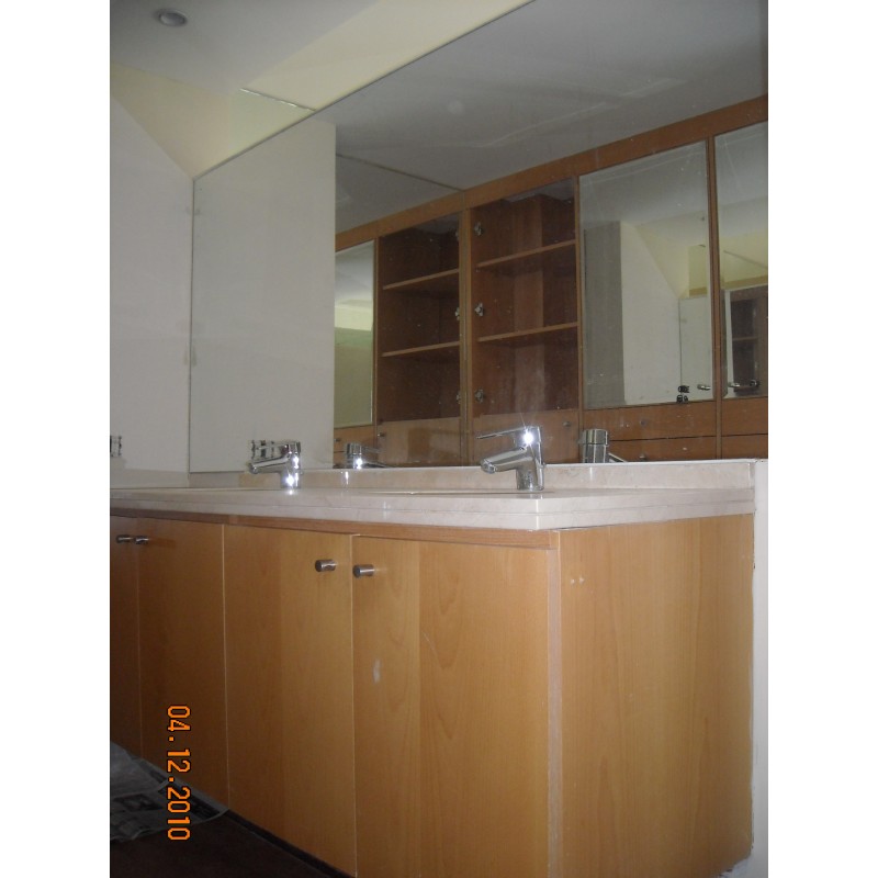 MUEBLE ENCHAPADO MADERA BARNIZADO CON CUBIERTA EN MÁRMOL TRAVERTINO