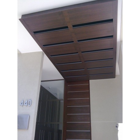 ENCHAPADA MADERA TEÑIDO OSCURO, CON PROLONGACIÓN HACIA ARRIBA Y REVESTIMIENTO SUPERIOR DE CIELO