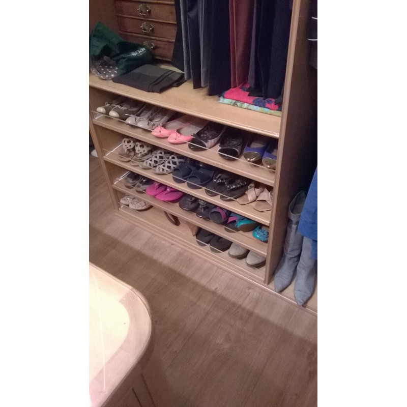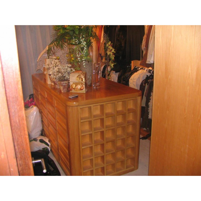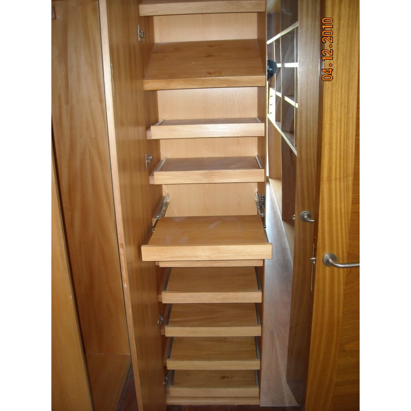 Barnizado, con bordes de madera natural, Cajonera Isla, Zapateros y Portacinturones.